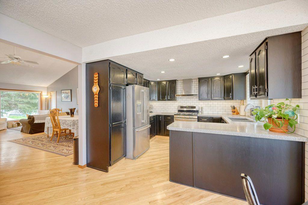 Step inside to discover refinished hardwood floors, fresh paint throughout, and richly stained cabinetry that add timeless elegance. The bright and spacious living/dining room features soaring vaulted ceilings — ideal for entertaining and family gatherings.